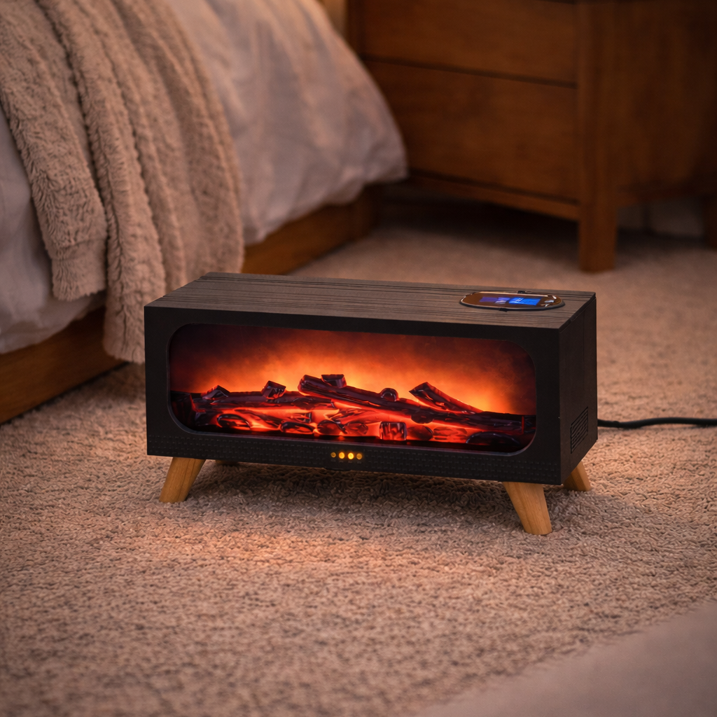 Cet humidificateur diffuseur effet cheminée combine humidification de l’air, diffusion d’huiles essentielles et éclairage d’ambiance dans un seul appareil compact. L’effet flamme LED crée une atmosphère douce et chaleureuse, idéale pour une chambre, un salon ou un bureau, sans produire de vraie chaleur.
